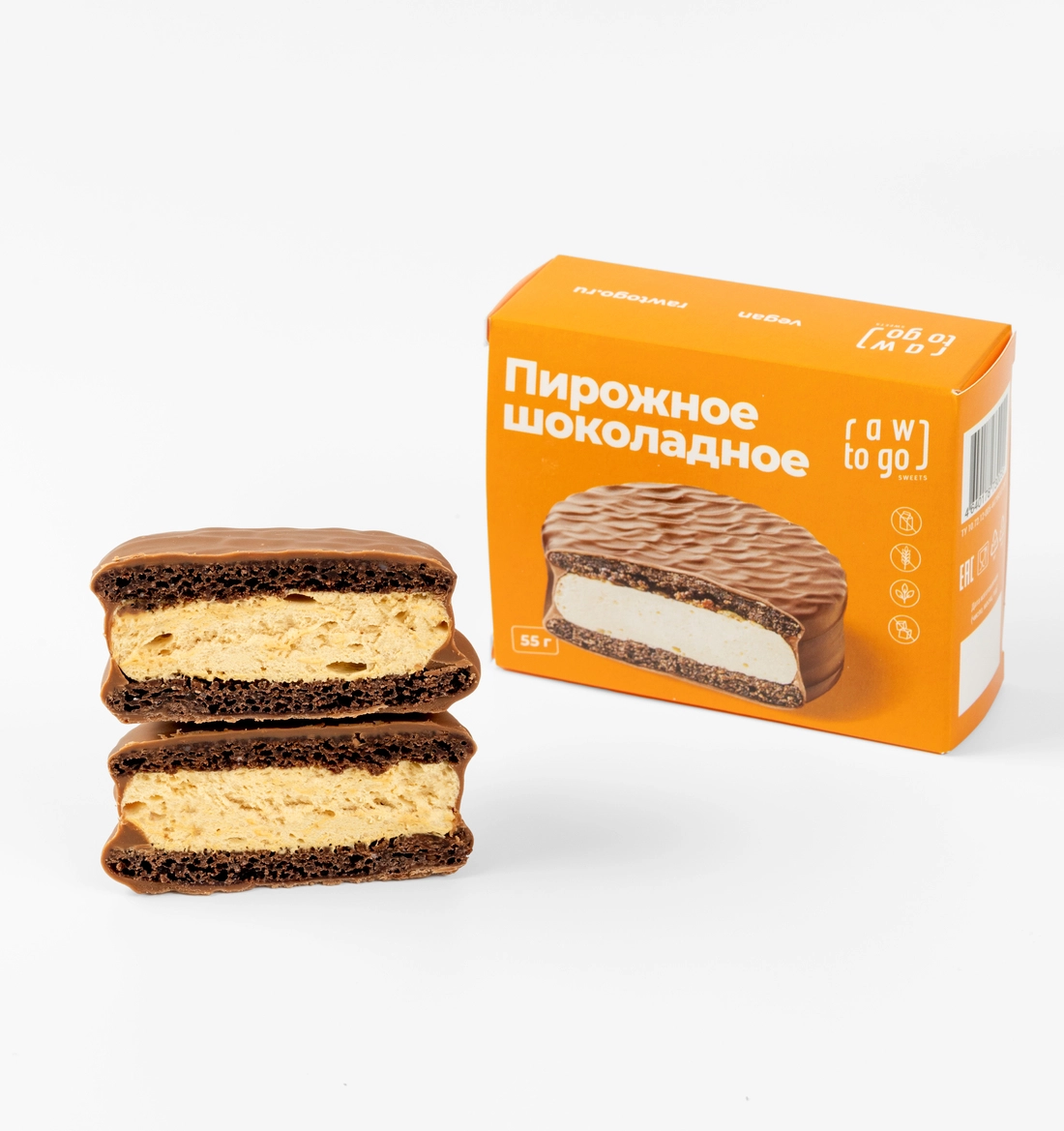 Описание: Веганский Sweet бисквит шоколадный с ванильным суфле напоминает внешне знакомый с детства десерт, но пирожное из шоколадного бисквита с прослойкой ароматного ванильного суфле покрытого тонким слоем шоколада отличается от популярного лакомства исключительно натуральным составом.